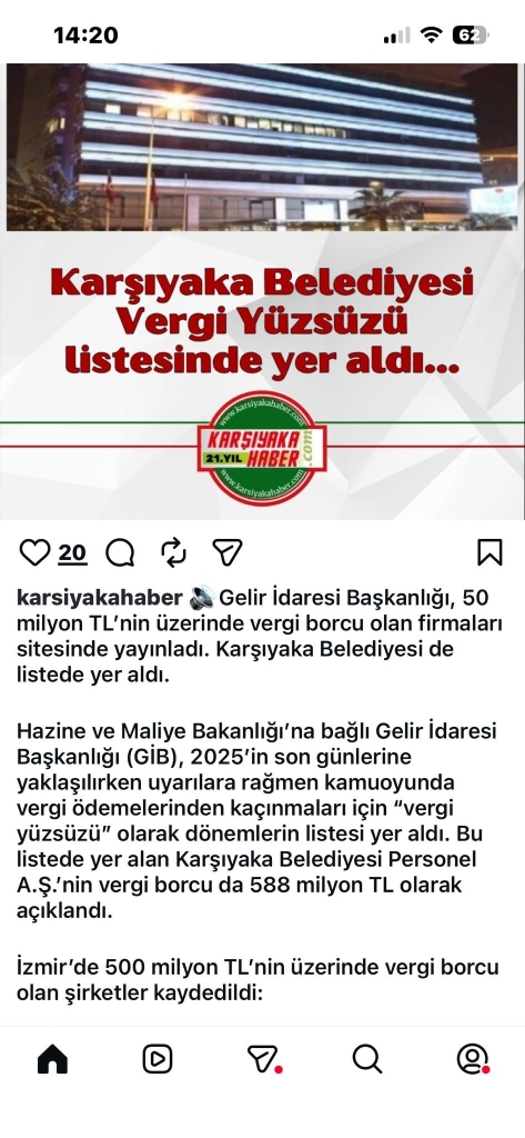 Karşıyaka Belediyesi iştiraklerine ilişkin ortaya çıkan 588 milyon TL’lik vergi borcu, yalnızca bugünün değil, yıllara yayılan bir yönetim zincirinin sonucu olarak değerlendiriliyor.