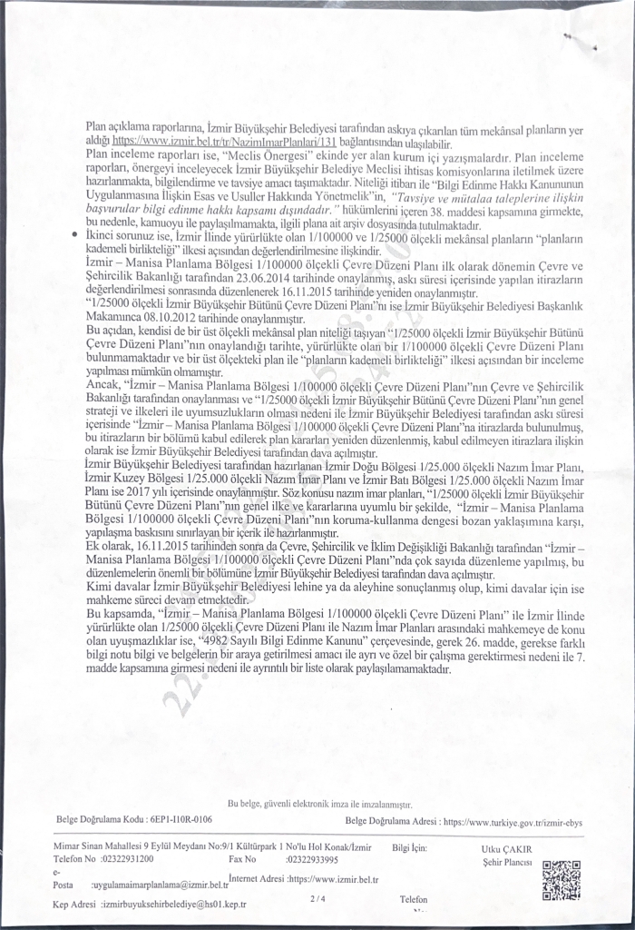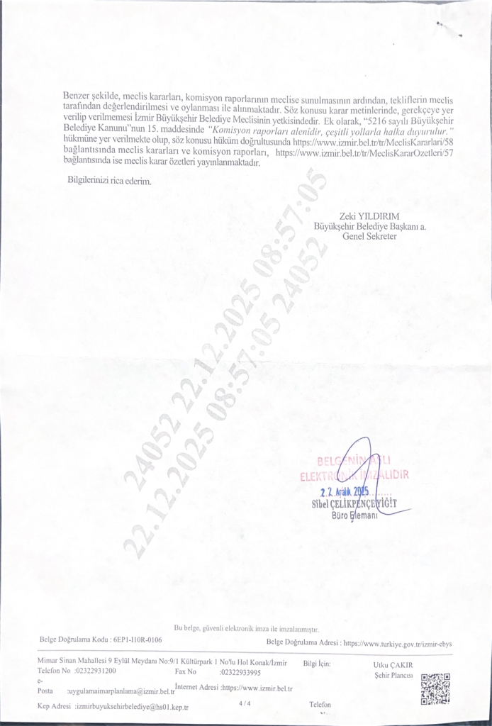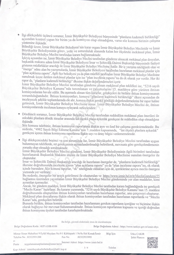 Bulunuyorsa bu birimin görev tanımı ve çalışma yöntemi nedir? - İzmir Büyükşehir Belediye Meclisi’nde son bir yıl içinde reddedilen plan değişiklikleri ve plan itirazları arasında;